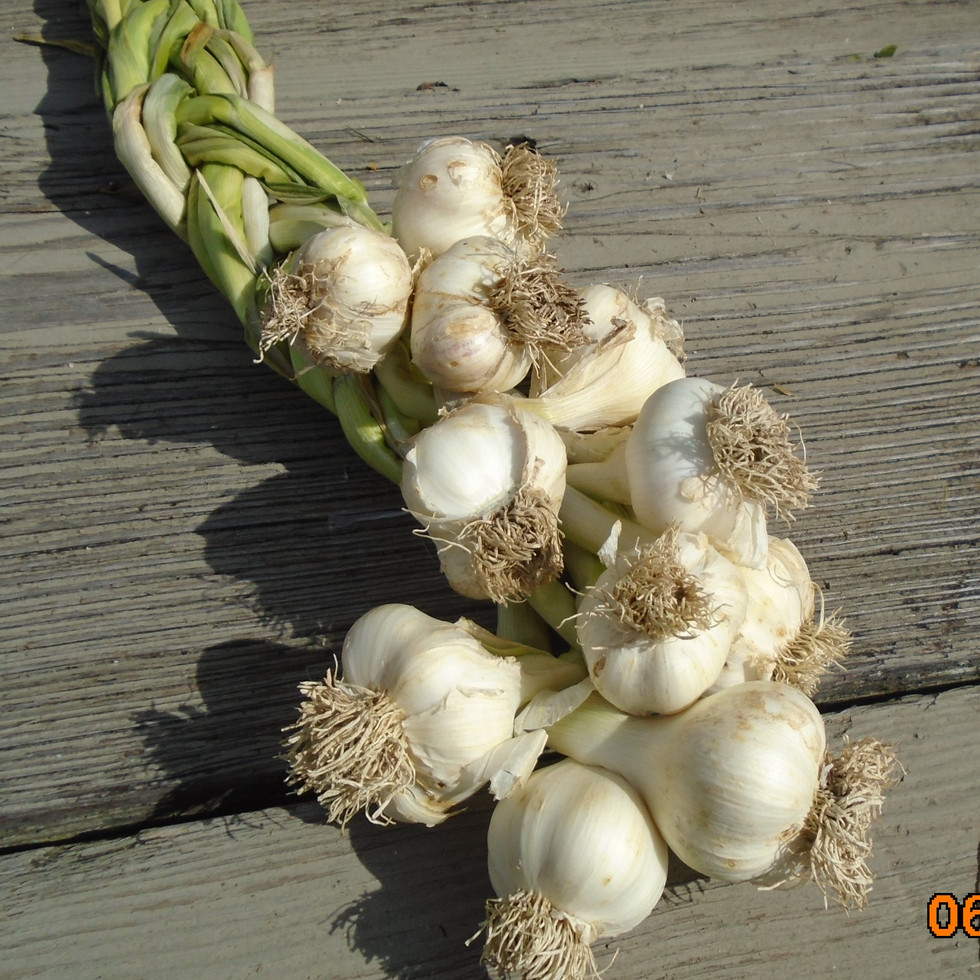 1. First, Let your garlic dry in the sun for three or four days and then pick out twelve to twenty four of your best heads of garlic. The stems will still be somewhat juicy, don't worry about that.